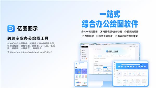 全面画图类型:支撑 280 + 图形图表绘制,帮帮用户将笼统思维和复杂消息为曲不雅的视觉表达。